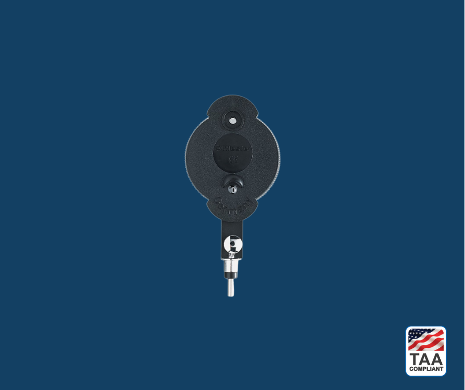 • Standard 2.5 V ophthalmoscope head for routine fundoscopic exams.
