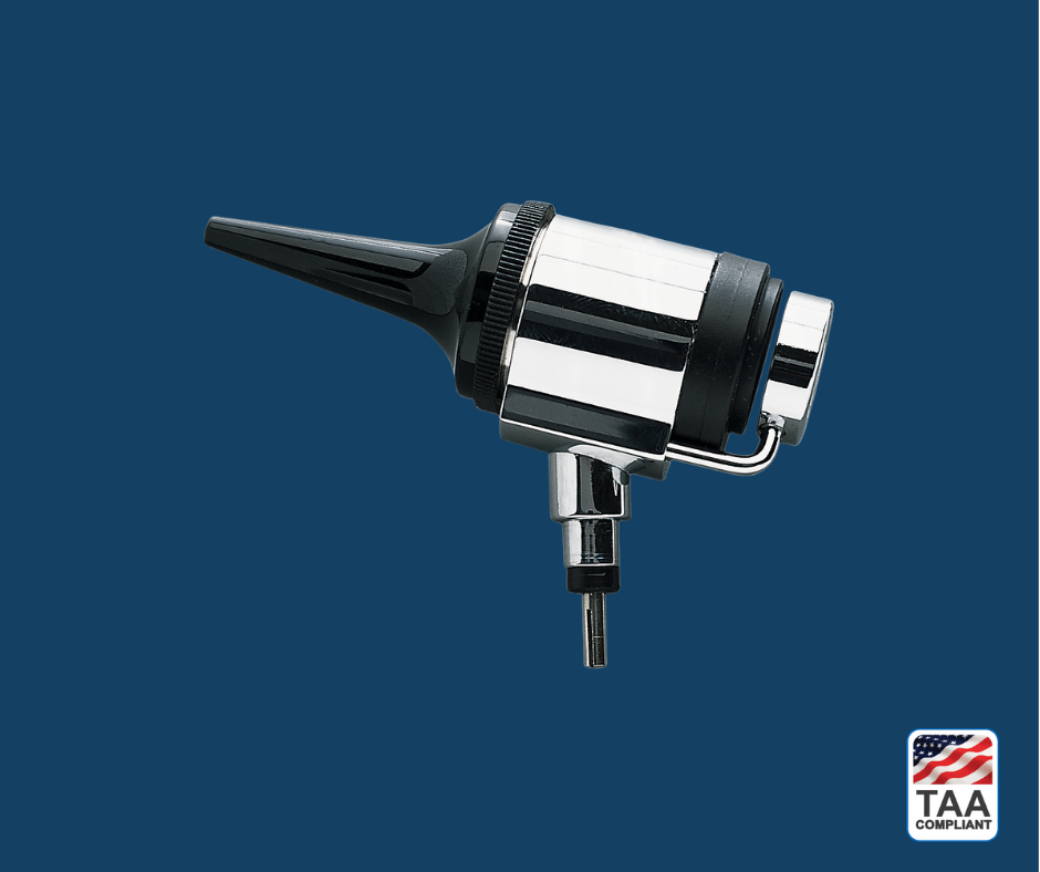 • Vacuum-illuminated otoscope head for classic ear exams.