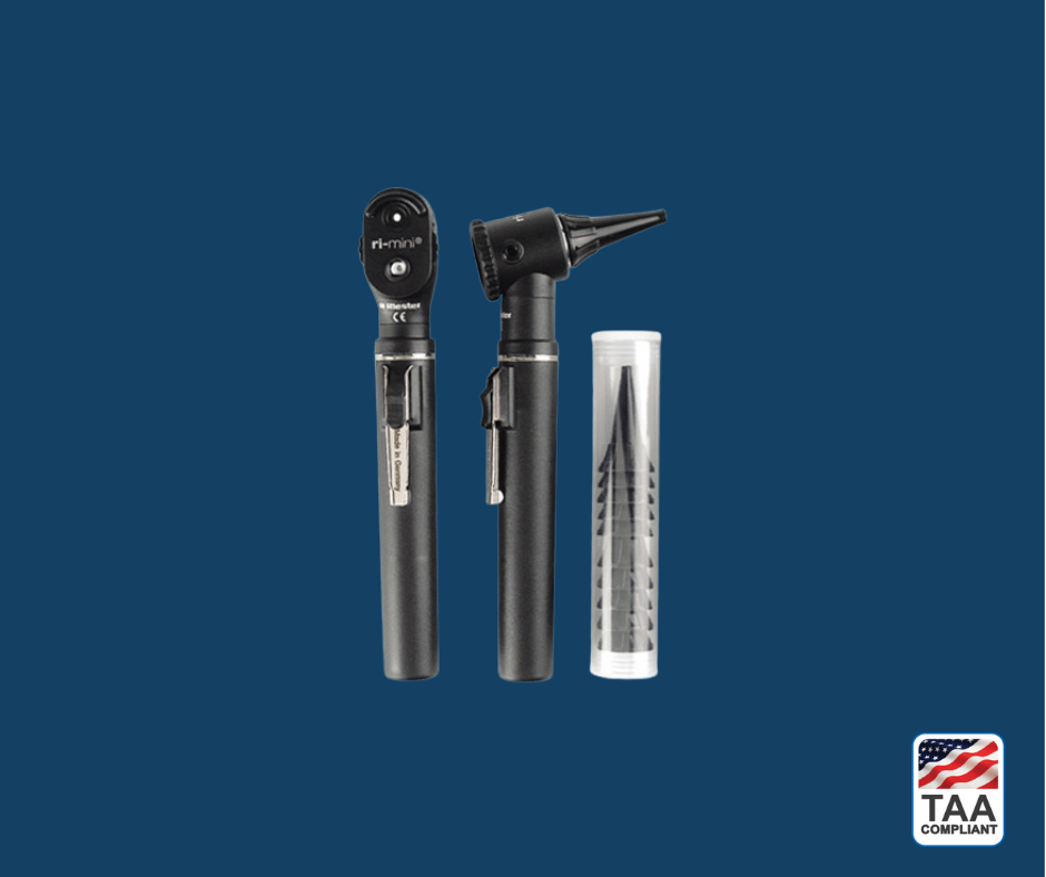 • Compact diagnostic kit featuring otoscope and ophthalmoscope with carrying case.