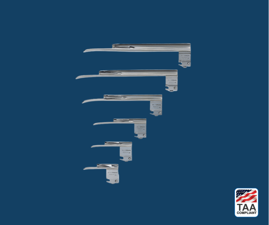 • Miller size 1 laryngoscope blade with detachable fiber optic light.