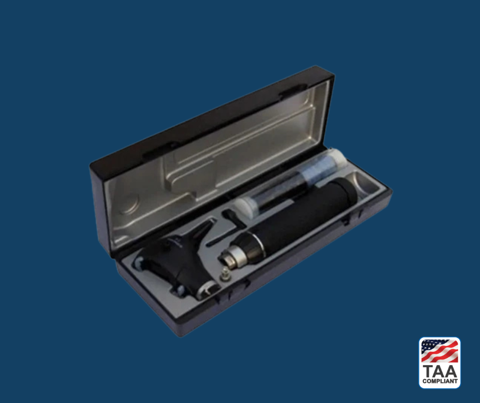 • Dual-instrument diagnostic set combining LED otoscope and ophthalmoscope.