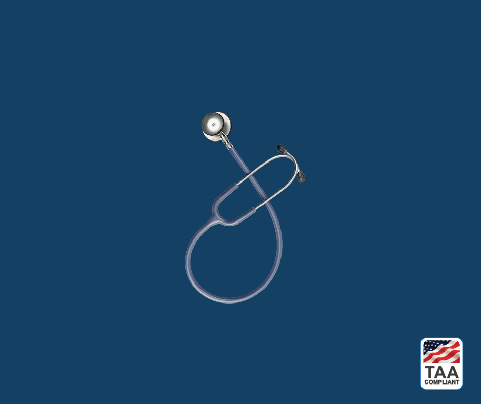 • Versatile triple-head stethoscope with striking blue finish and box packaging.
