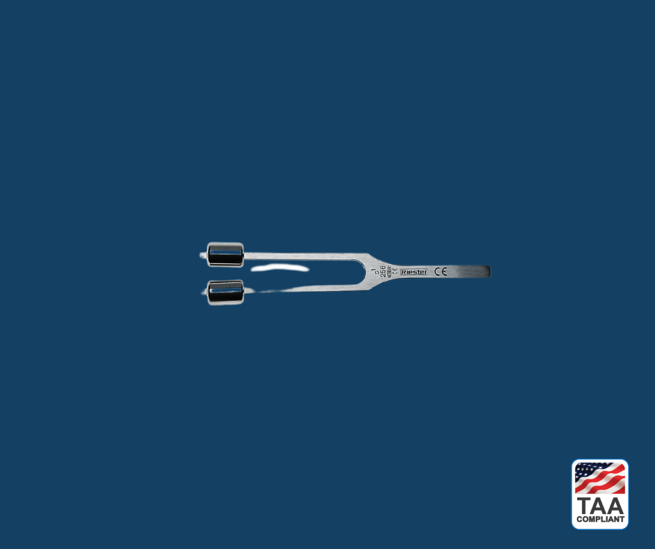 • Mid-frequency stainless steel tuning fork used in both neuro and audiology exams.
