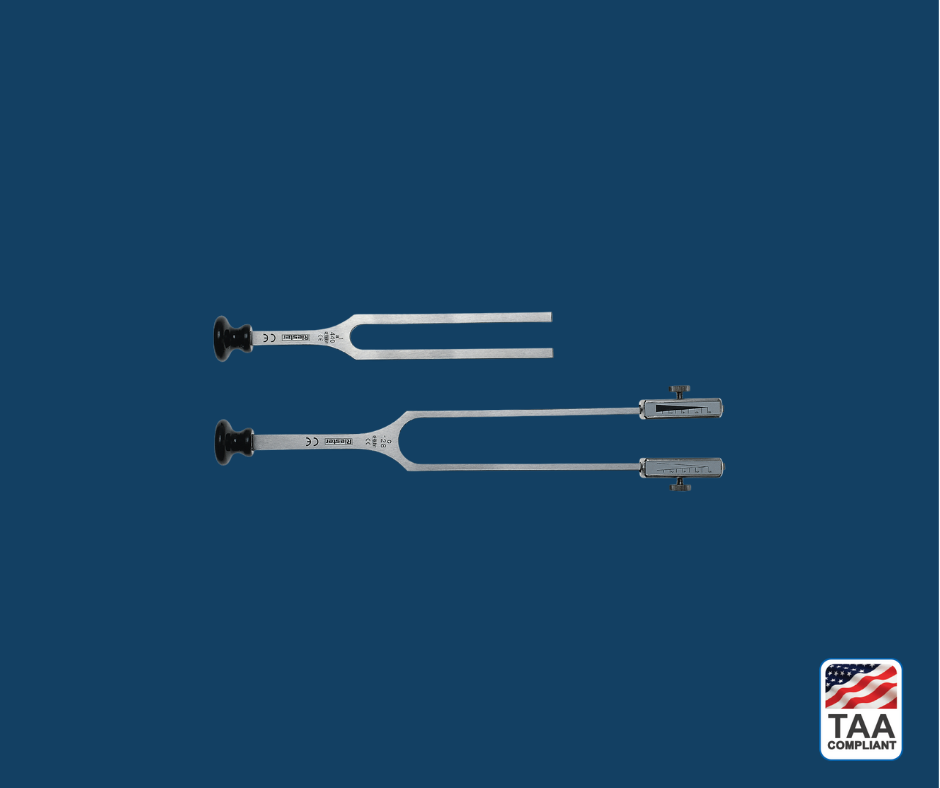 • Specialized tuning fork for vibration threshold testing with numeric indicator.